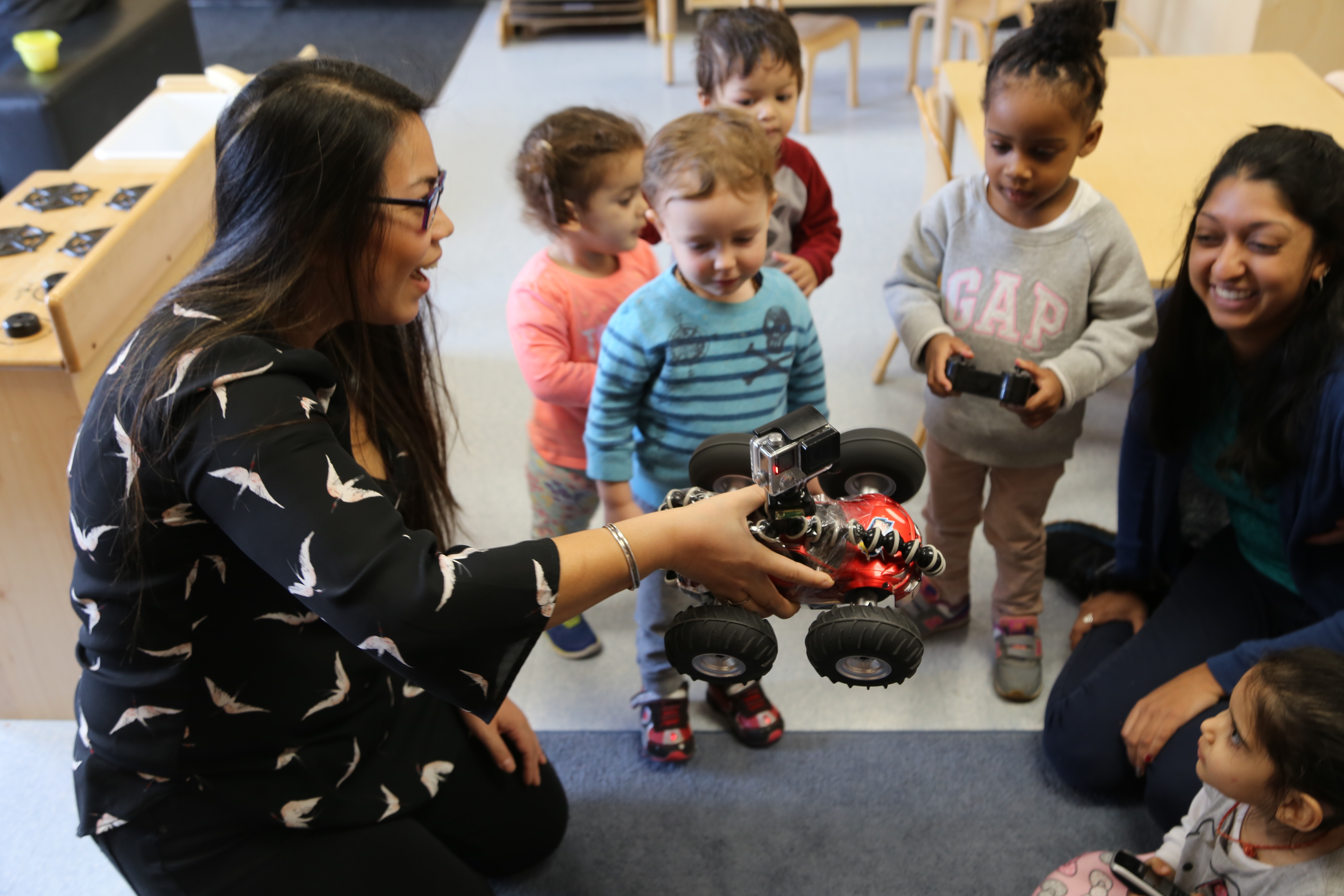 In the Early Learning and Child Care Centre, the toddler and preschoolers expressed curiousity about the GoPro strapped to the remote control car. They were very quick to wonder what it was and could they get a closer look?