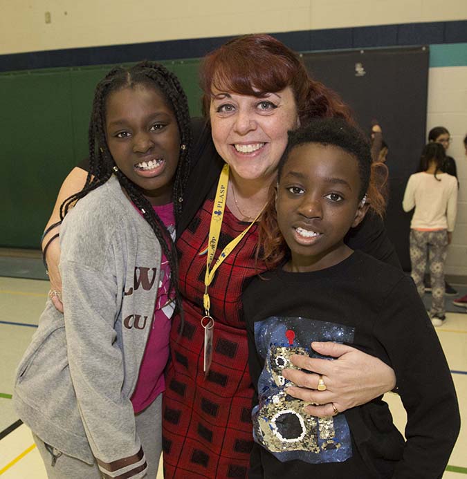 Support Staff, Lana receiving one of many hugs during PLASP program.