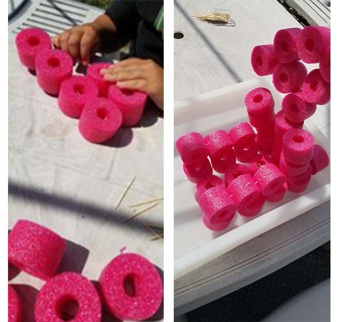 Attach the pool noodle pieces together using toothpicks, forming the desired design shape.
