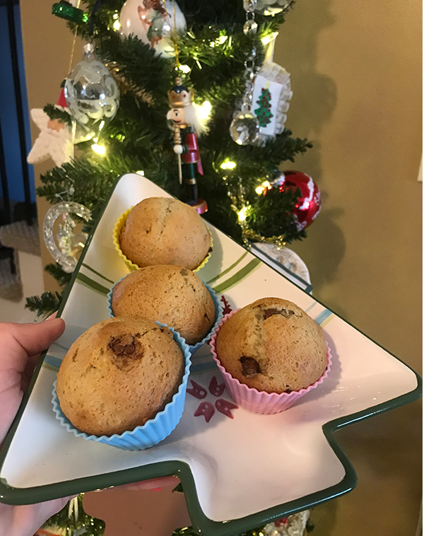 Sprinkle the remaining 1/4 cup of chocolate chips on top of the loaves. Bake at 350° for 30-35 minutes or until toothpick inserted in the middle comes out clean.