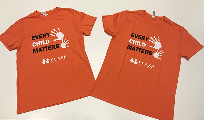Today, Thursday, September 30th is Orange Shirt Day, also known as the National Day for Truth and Reconciliation. If you are dropping-off, or picking-up children from a PLASP program or centre today, you may notice our staff wearing orange t-shirts. At PLASP we wear orange to show that we stand in support of residential school survivors.