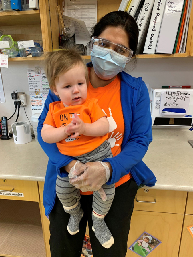 PLASP child and staff wearing their orange in support of Orange Shirt Day on September 30th.