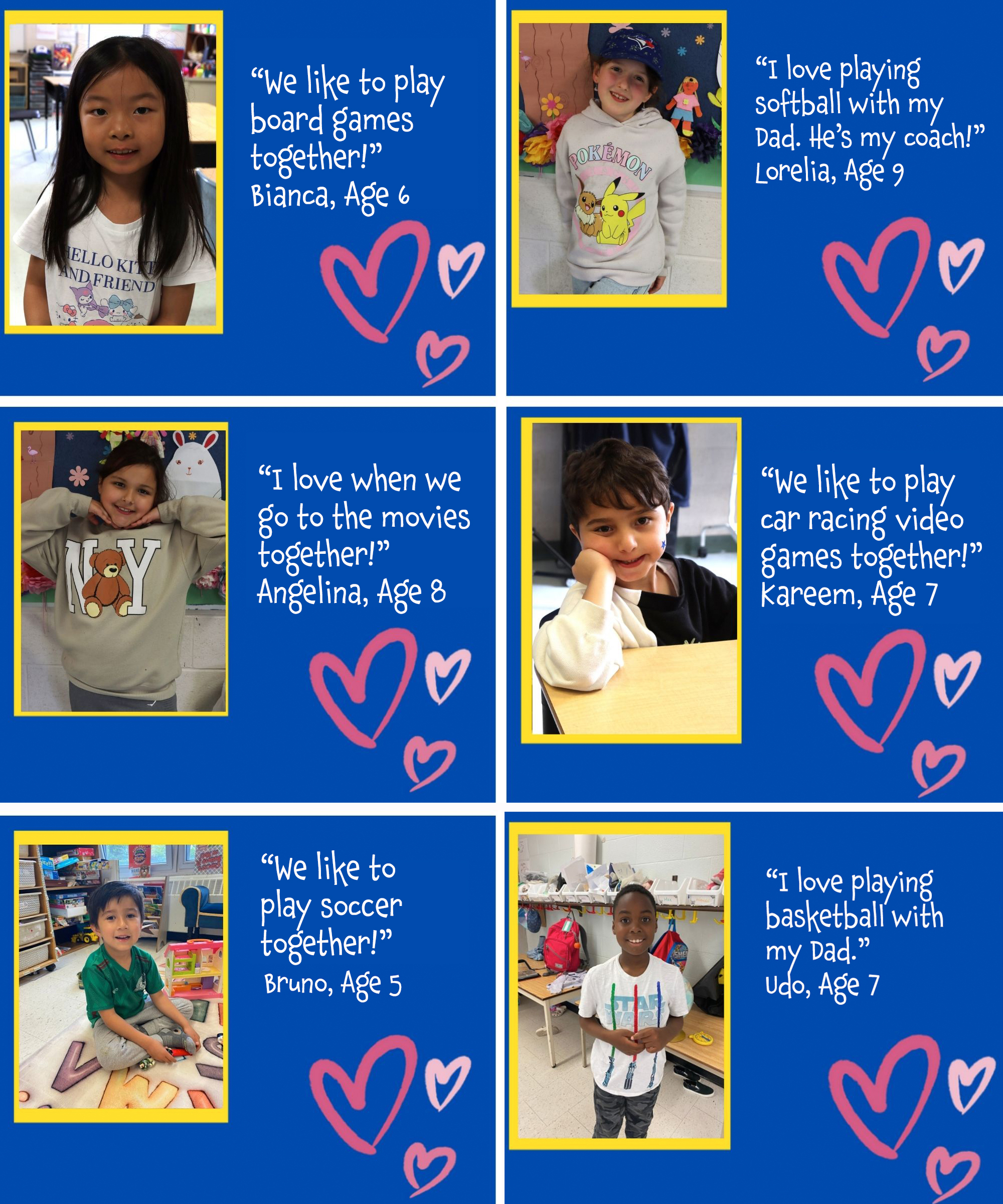 Children have a way of expressing themselves with sincerity and honesty, so we asked some of our young PLASP friends to describe what they like best about spending time with their dads. Here’s what they had to say!